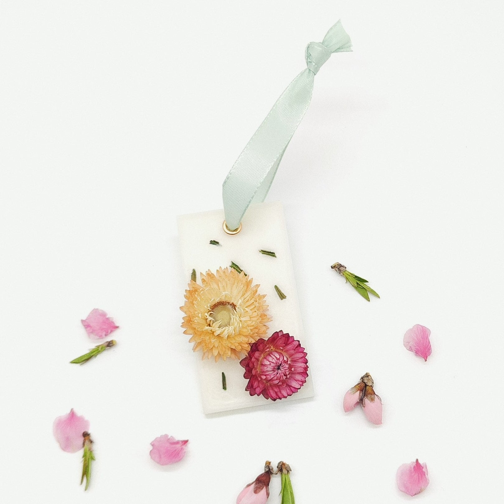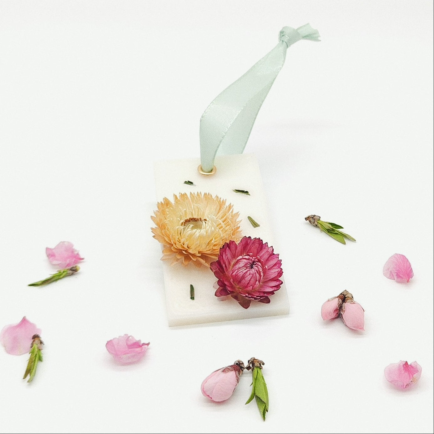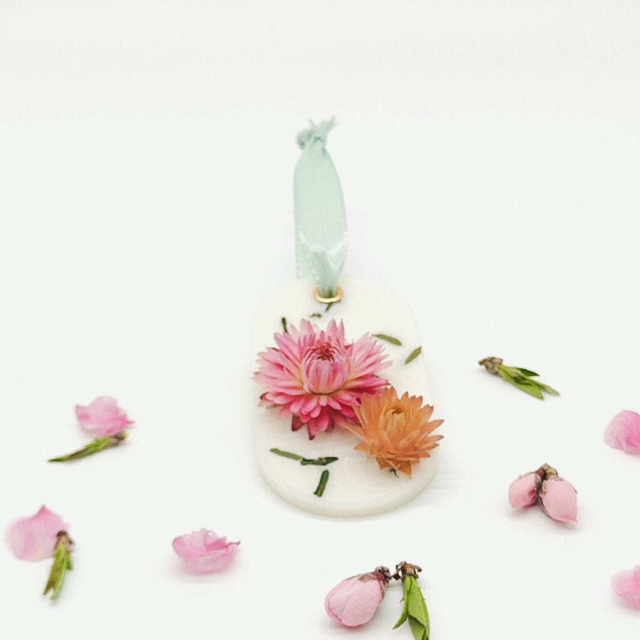 Ambientador botânico em cera com flores secas incorporadas. Uma peça delicada para perfumar e decorar com naturalidade e elegância.