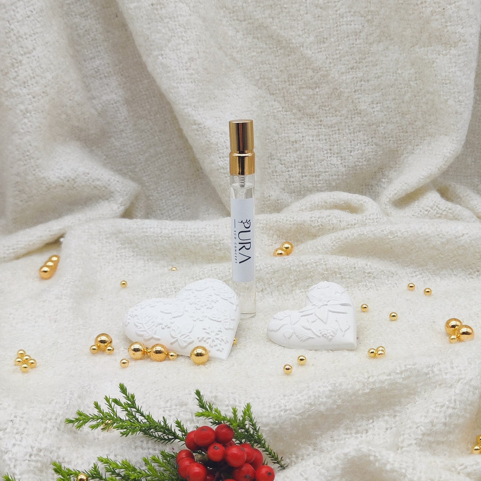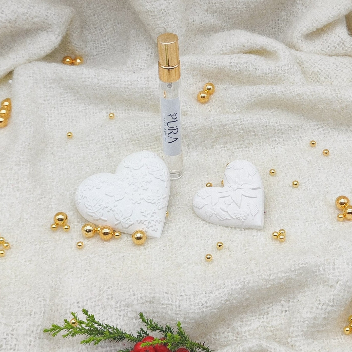 Ambientadores cerâmicos feitos à mão, com um aconchegante aroma de Talco Floral.