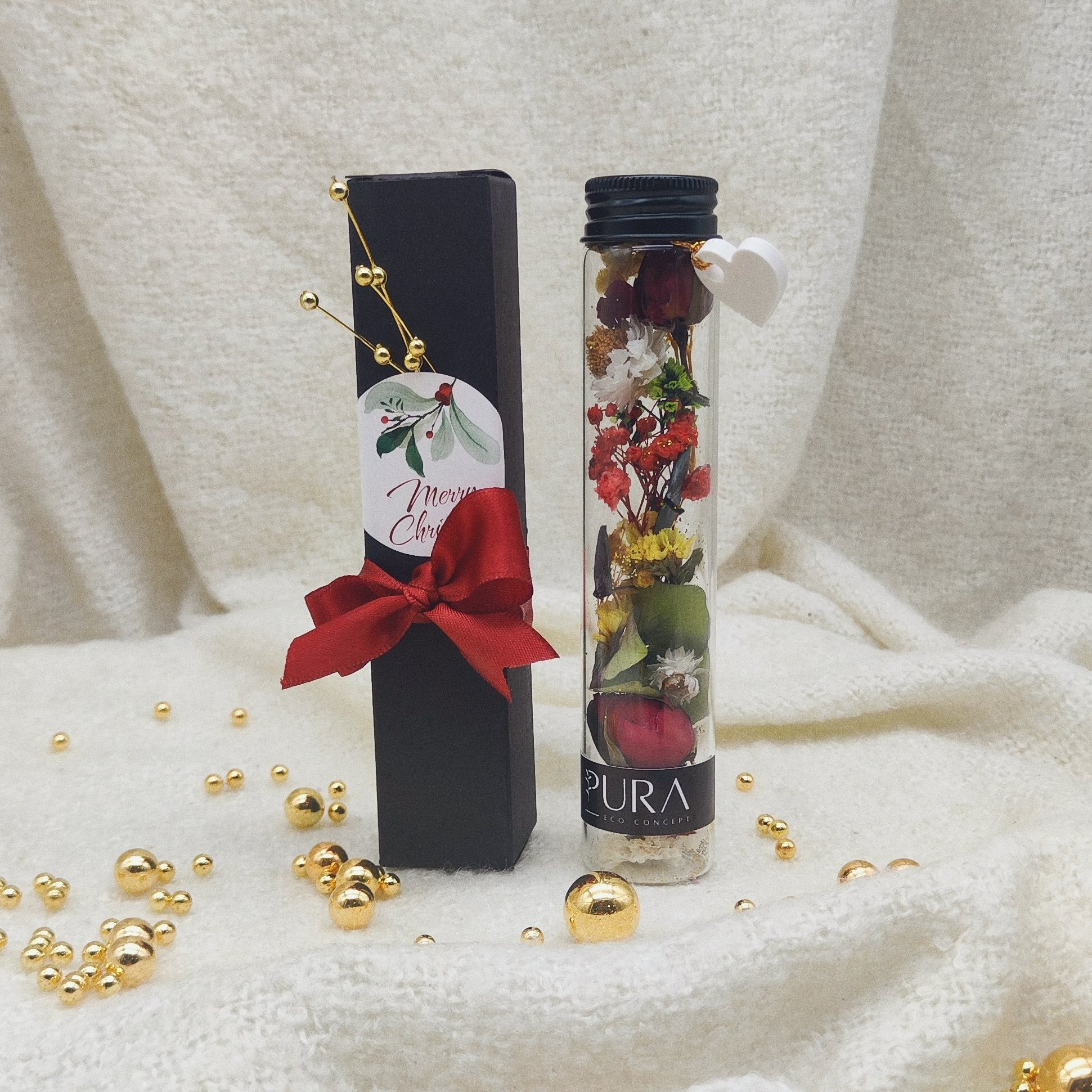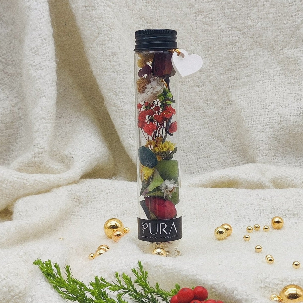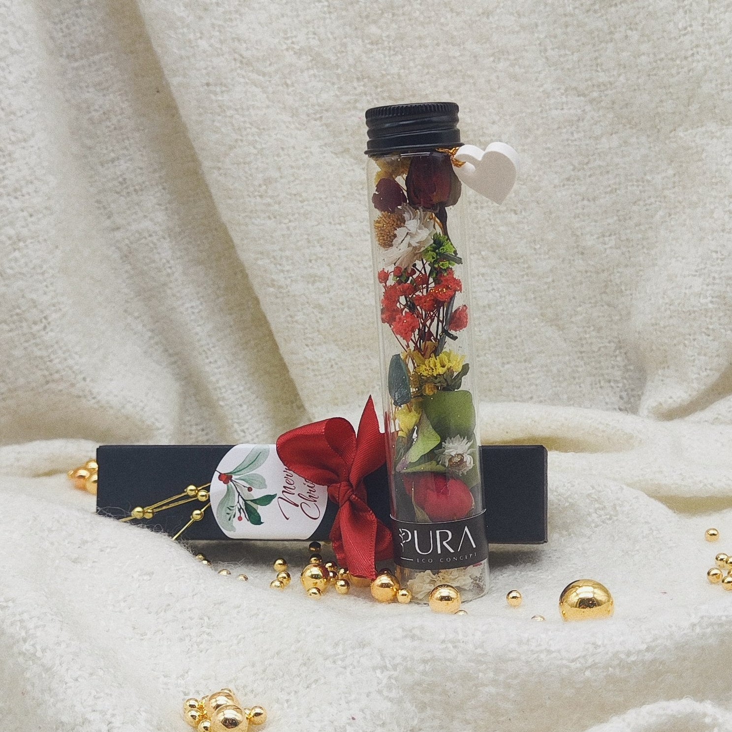 Este elegante e delicado frasco simboliza a conexão entre a natureza e os sentimentos humanos. Assim como as flores secas mantêm a sua beleza apesar do passar do tempo, os afetos verdadeiros também permanecem no nosso coração. Cada frasco guarda um pedacinho da natureza e um pequeno coração, lembrando-nos da importância dos pequenos gestos e das memórias que cultivamos.
