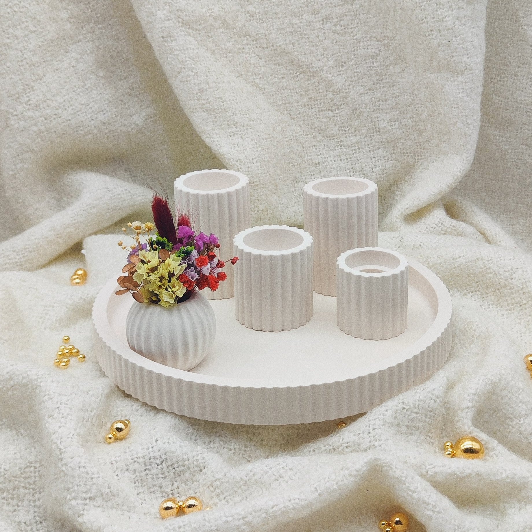 Conjunto decorativo inspirado na tradicional Coroa do Advento. Cada vela representa um dos quatro domingos que antecedem o Natal, criando um ritual simples e acolhedor para acompanhar a contagem até à grande celebração. Um detalhe simbólico e cheio de significado, para trazer aconchego e momentos de reflexão à época natalina.