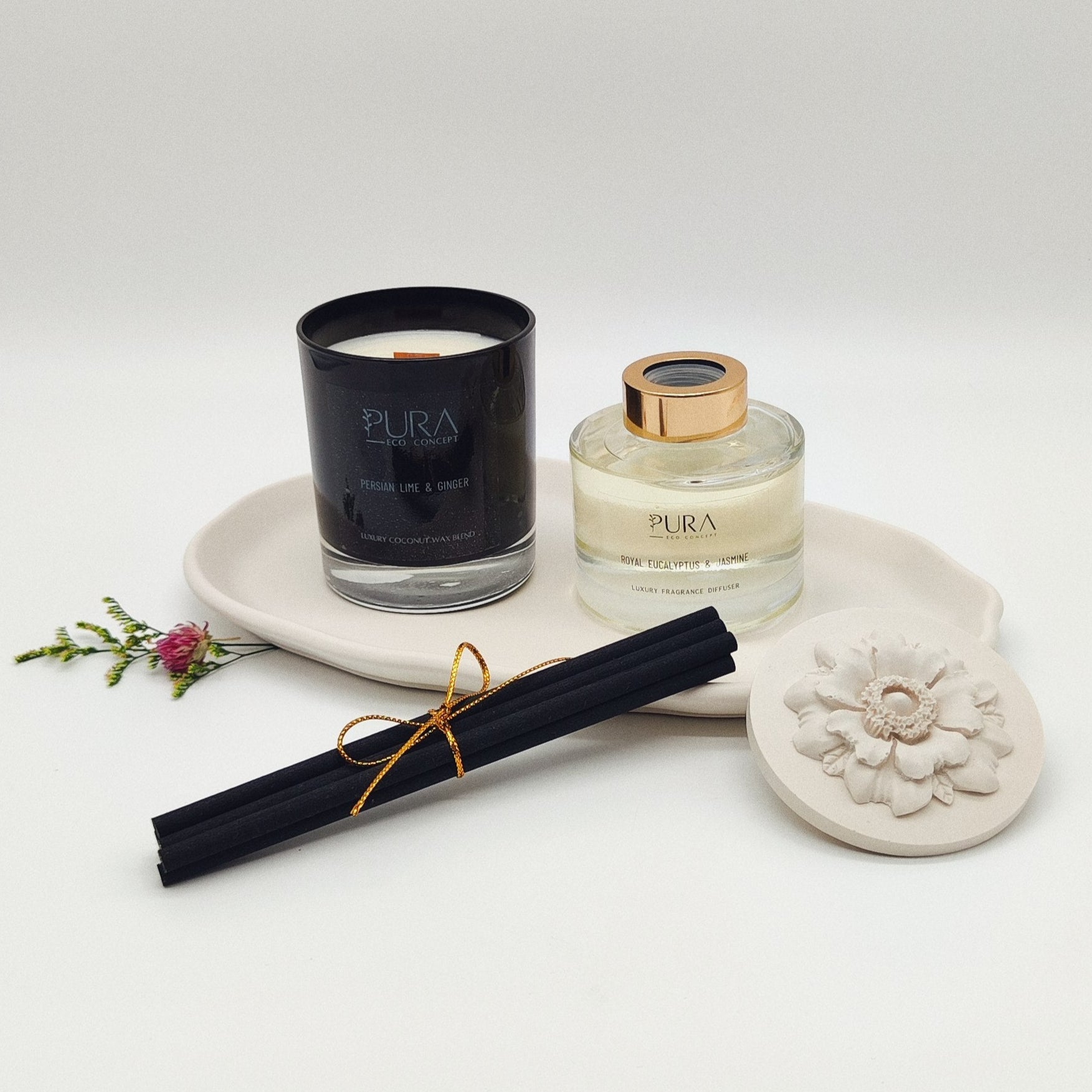 - óleos de fragrância premium, sem químicos nocivos e sem ftalatos;
