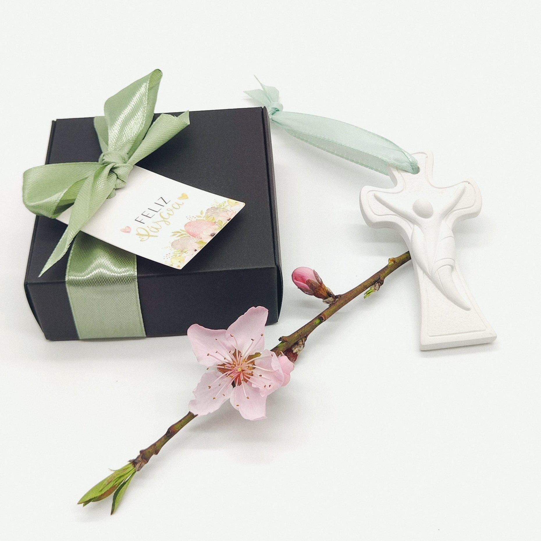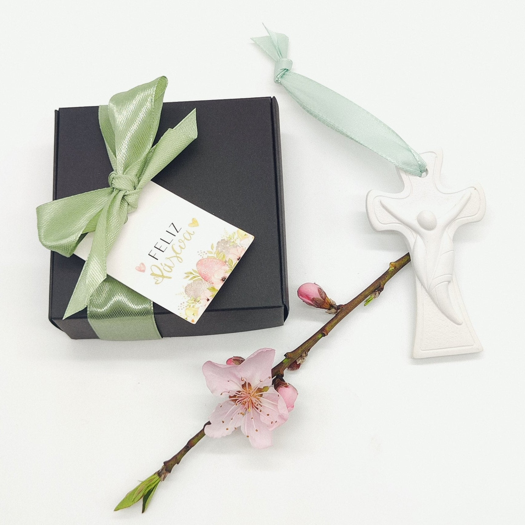 Representação minimalista e perfumada de Cristo, criada em cerâmica. Um símbolo espiritual elegante para oferecer com significado nesta Páscoa.